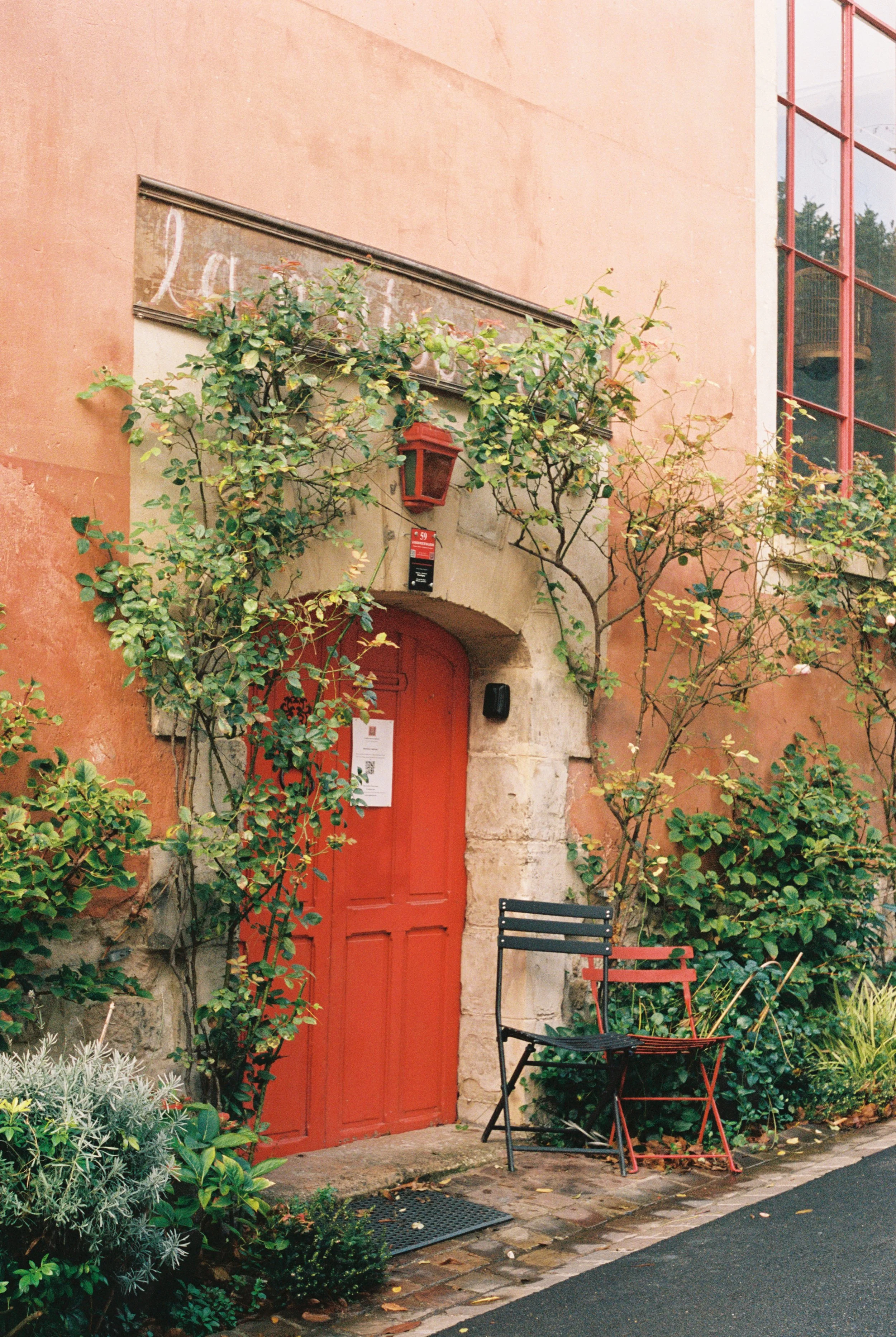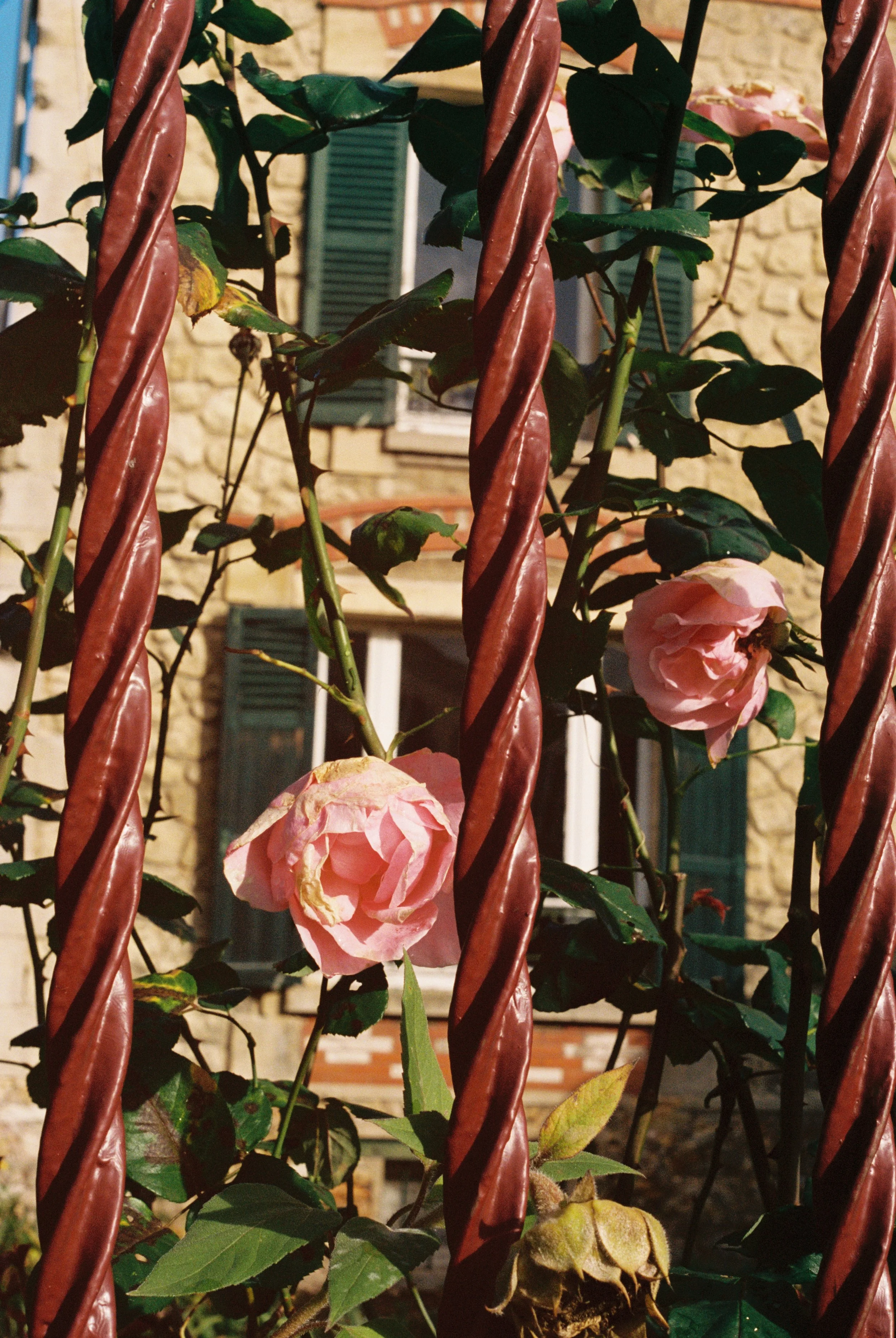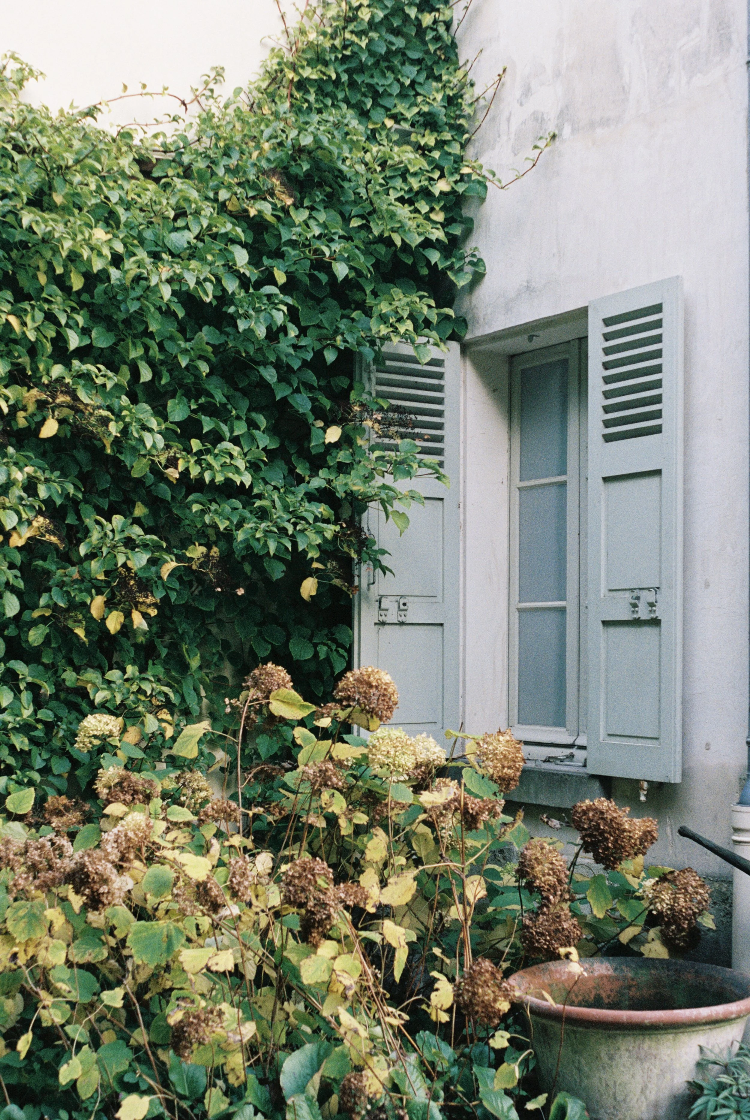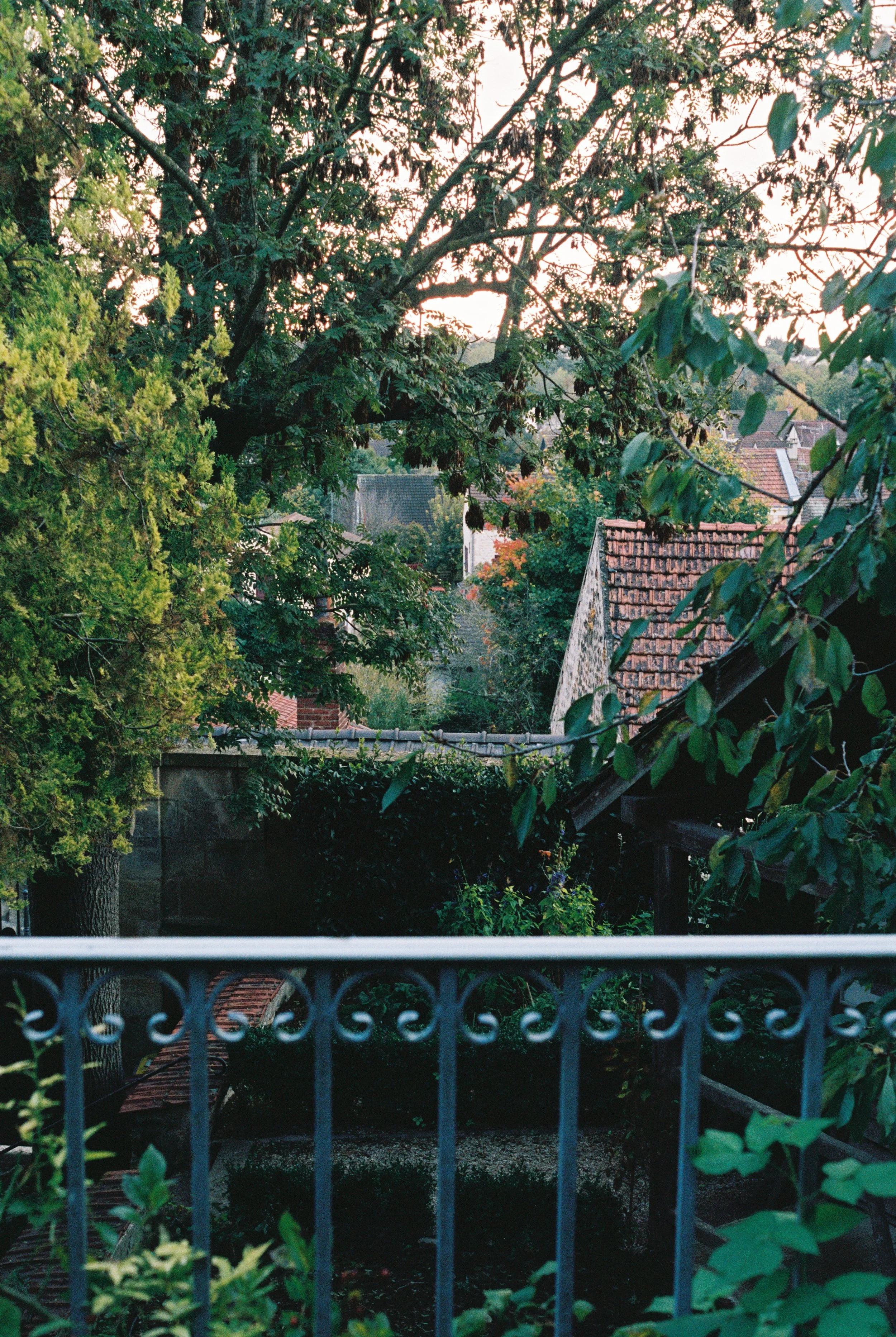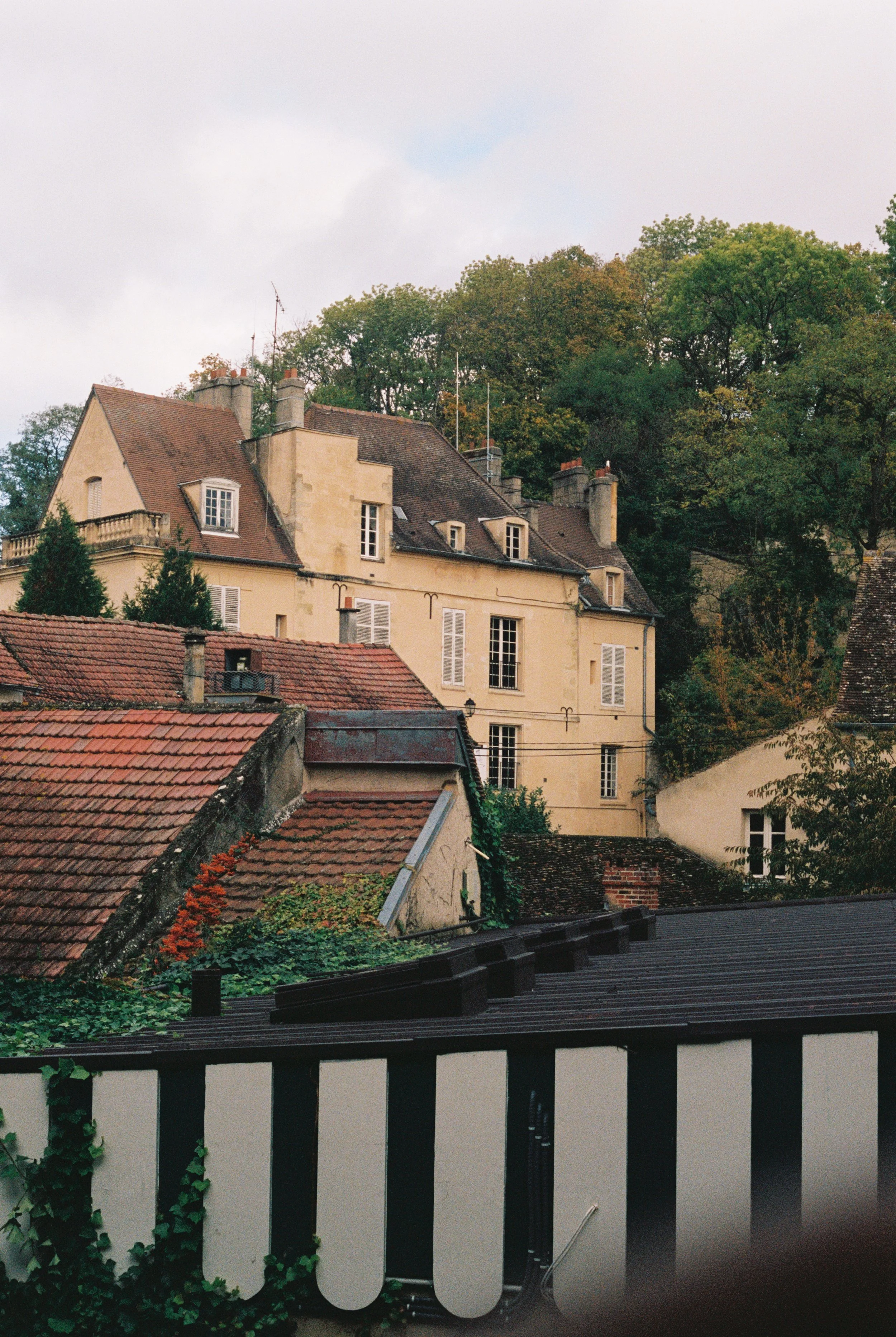 Overgrown stone walls. The drooping of pink roses. Bright orange leaves on old, old trees. Green and deep red shudders. Auverse packed on all the charm.